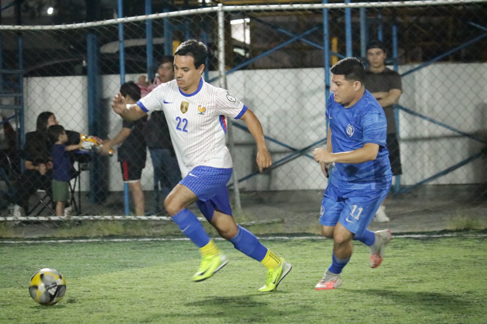 La explosiva jornada dio comienzo sobre el flamante sintético de fútbol 7 donde los equipos “Último Lugar” se vio las caras con su rival Les Bleus, teniendo en juego el título de Liga del circuito de los martes.